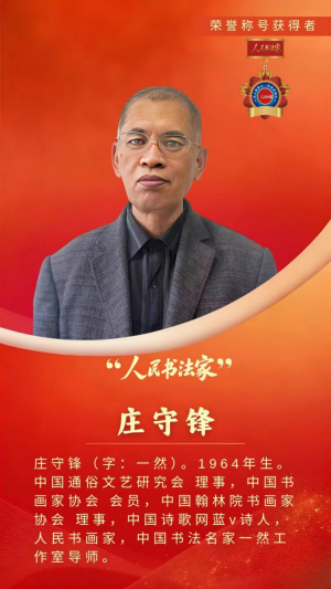 庄守锋,字一然,1964年生,如今已是中国通俗文艺研究会理事、中国书画家协会会员等多个专业协会的核心成员。但比起这些头衔,他更在意的,是“公益艺术家”这个称号。从迪拜国际文化展的国际舞台,到乡村农舍的堂屋墙面;从全国性赛事的金奖荣誉,到困难家庭手中的春联福字,四十余载的艺术生涯里,庄守锋用笔墨勾勒出艺术与生活的紧密联结,也践行着一位“人民书法家”的责任与担当。